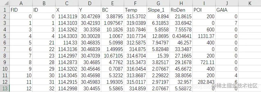 column_names=['FID','ID','X','Y','BC','Temp','Slope','RoDen','POI','GAIA']