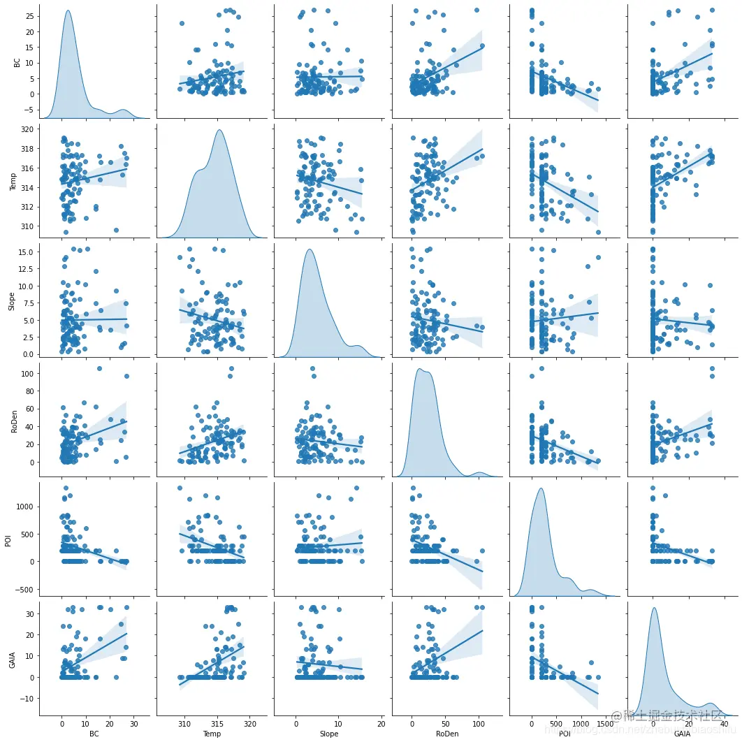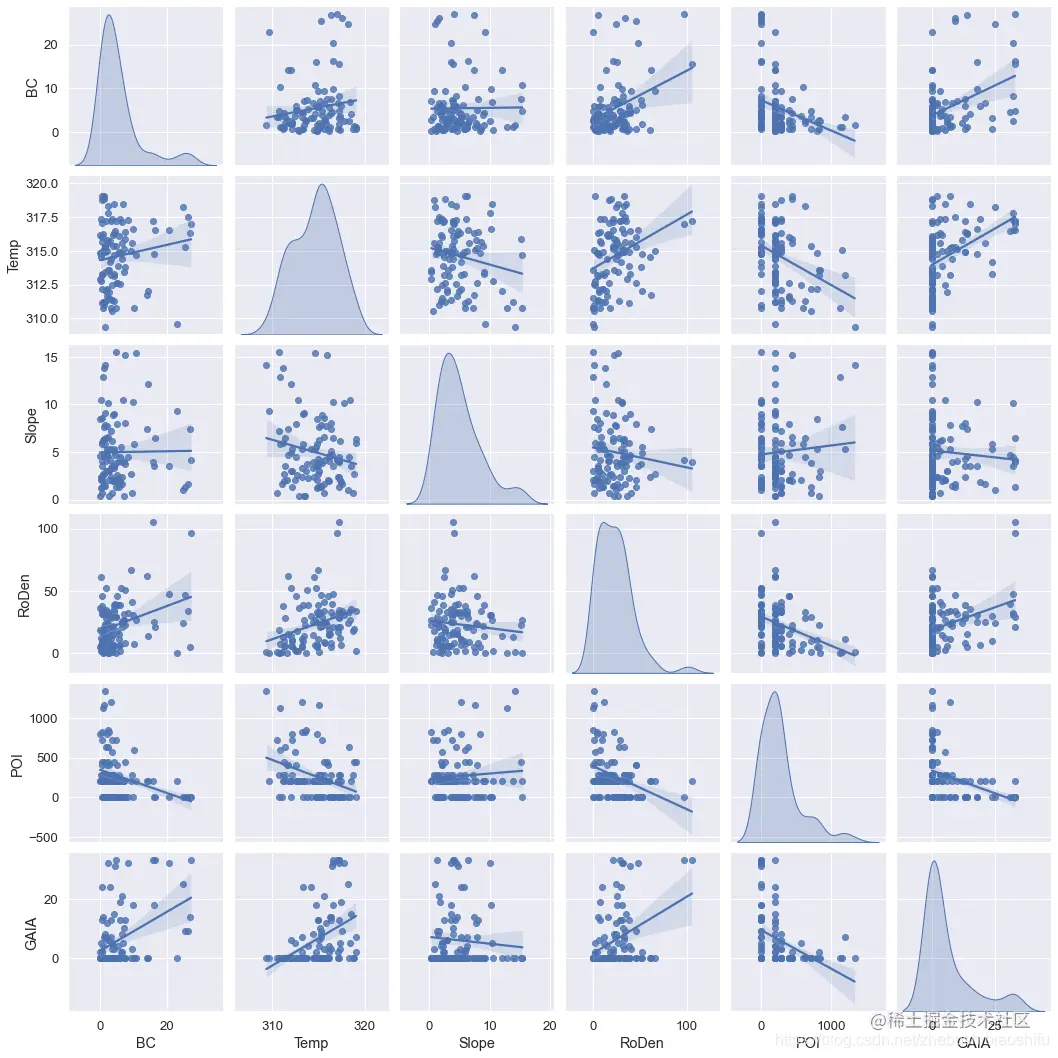以kind和diag_kind分别选择'reg'和'kde'为例,绘图结果如下: