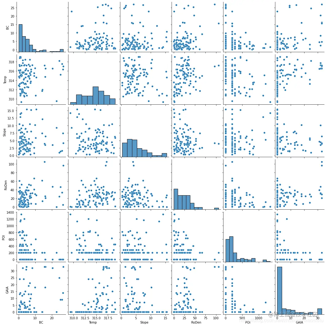 不过,由于参与绘图的变量个数比较多,因此使得图中的字体有点看不清。可以加上一句代码在sns.pairplot这句代码的上面: