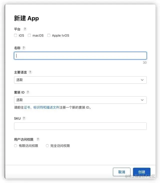 进入Apple developer首页,点击进入App Store Connect,添加新的App