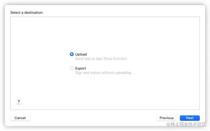 选择Upload接着下一步,(如果选择Export 导出ipa包应该也行)