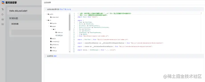 阿里低代码引擎看上去是基于一整套React的组件化框架,把原本需要编码插入的实现方式,转变成了基于web界面的参数化生成,但本质上其实是一套基于webUI交互的JS代码的generator。