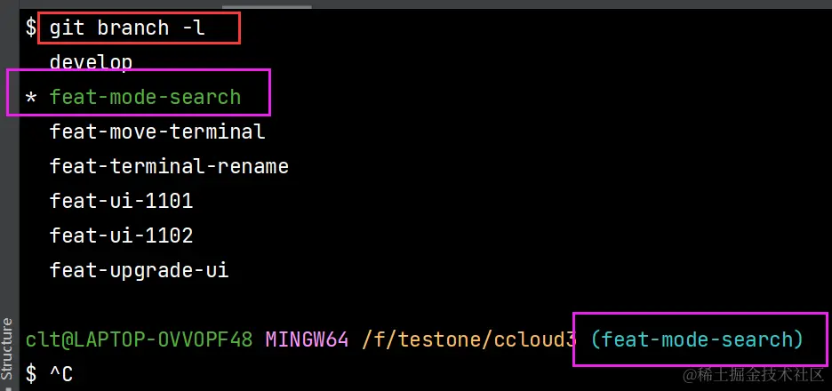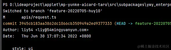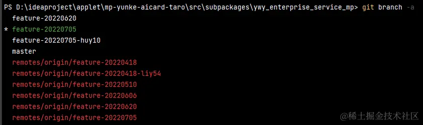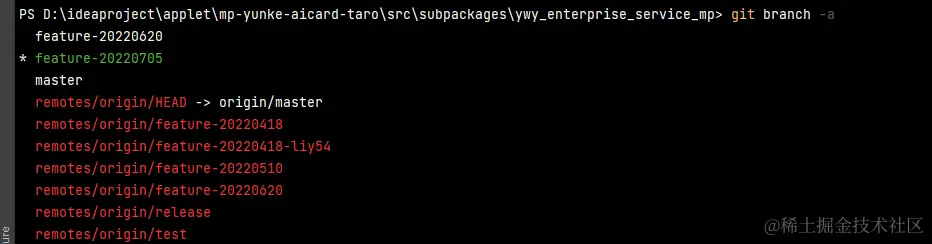 如图,现在在feature-20220705分支。如果没有在想要的分支,通过git checkout 分支名来切换分支