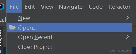 (1)这里编译器为idea,其他编译器大同小异。File->Open,选择你克隆下来的文件夹,就可以打开当前项目了。