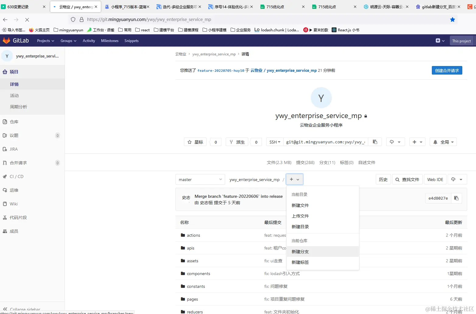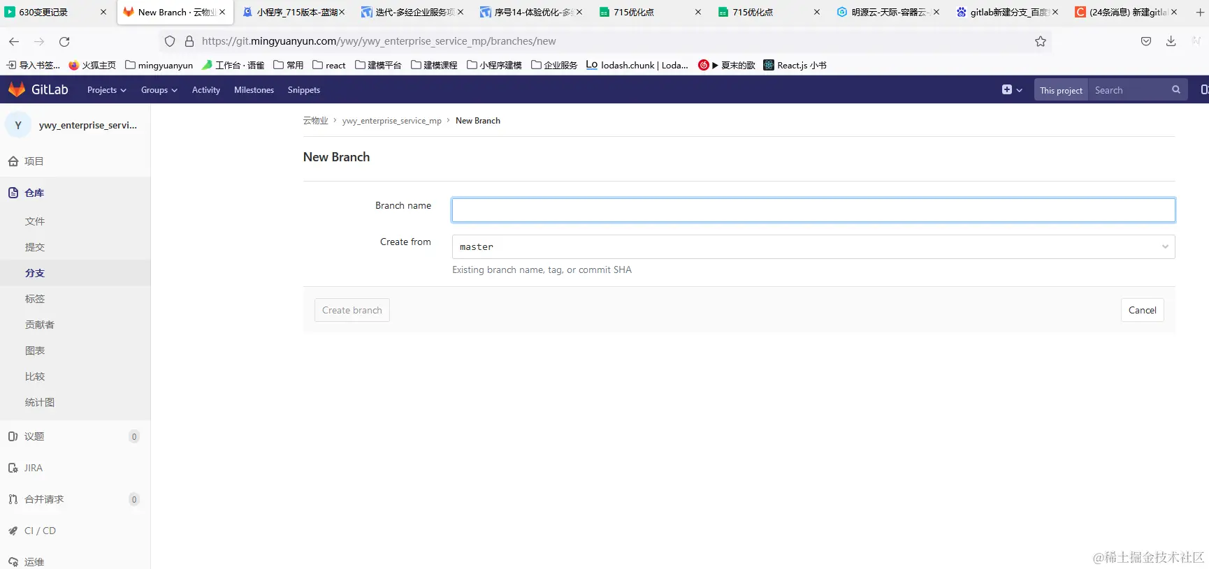 3、方式三:gitlab页面新建分支