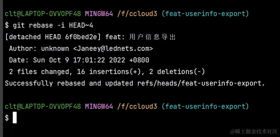 比如我这里要合并4个git -i rebase HEAD~4