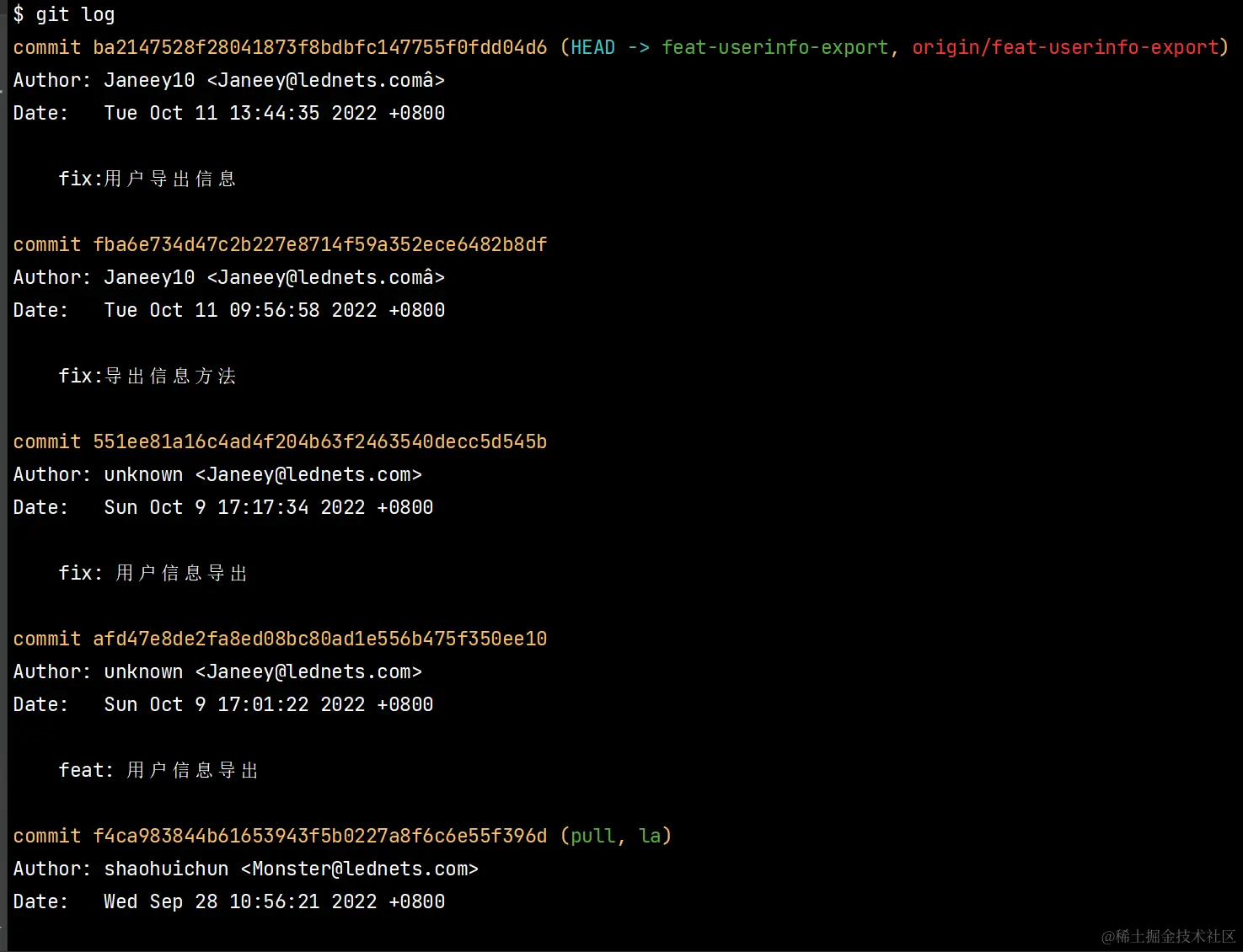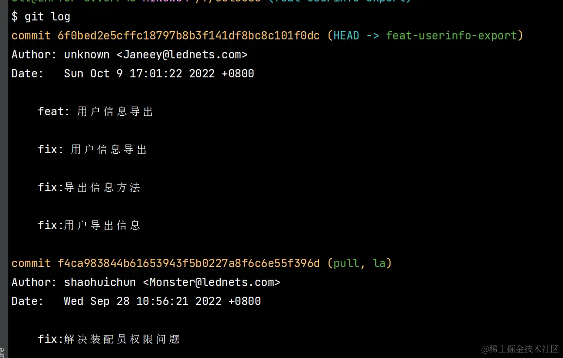 在feature-20220705分支下执行git log查看最新代码记录,在feature-20220705-huy10分支下执行git log查看最新代码记录,序号是否一致,如果一致则表示两个分支代码已一致