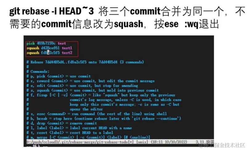2、git rebase -i HEAD~合并数量