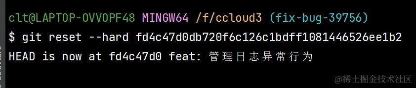 2、git reset --hard commit号(你要回滚至哪个commit就写哪个commit号)