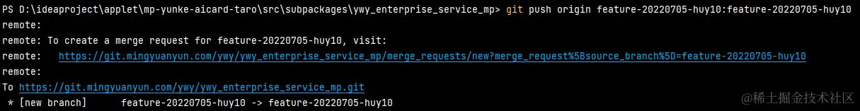 这里出现feature-20220705-huy10分支则表示创建成功