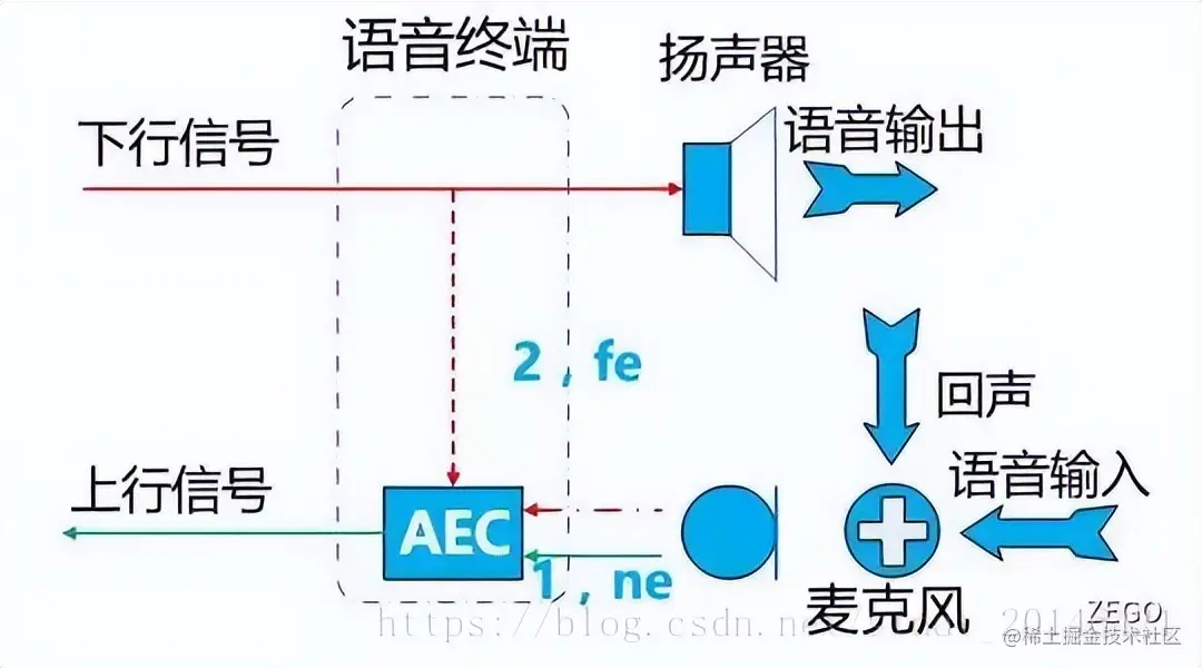 - 第三点是回声消除,回声的产生是扬声器播放的声音经过环境反射被麦克风重新采集并传输给对方,这样对方就会一直听到自己的回声,整个互动过程会非常难受;