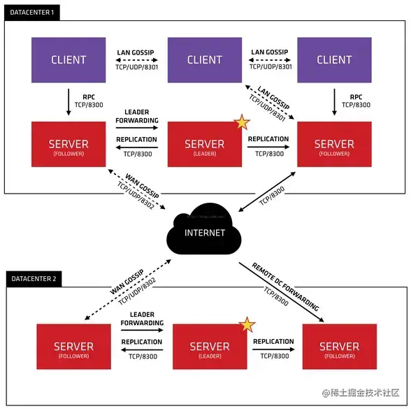 - server: 服务端, 保存配置信息, 高可用集群, 在局域网内与本地客户端通讯, 通过广域网与其他数据中心通讯。 每个数据中心的 server 数量推荐为 3 个或是 5 个。