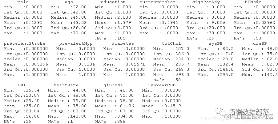 最后是因变量:冠心病(CHD)的10年风险。