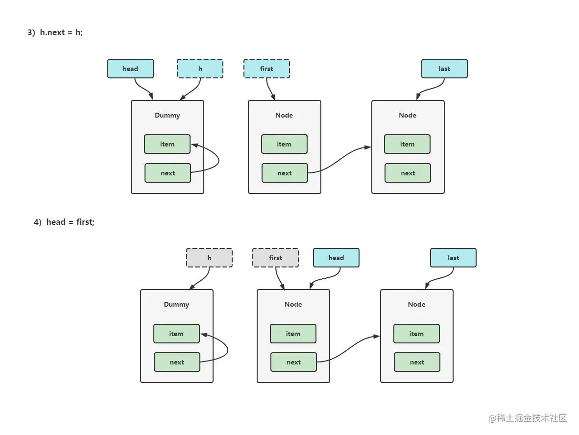 head = last = new Node<>(null, null);