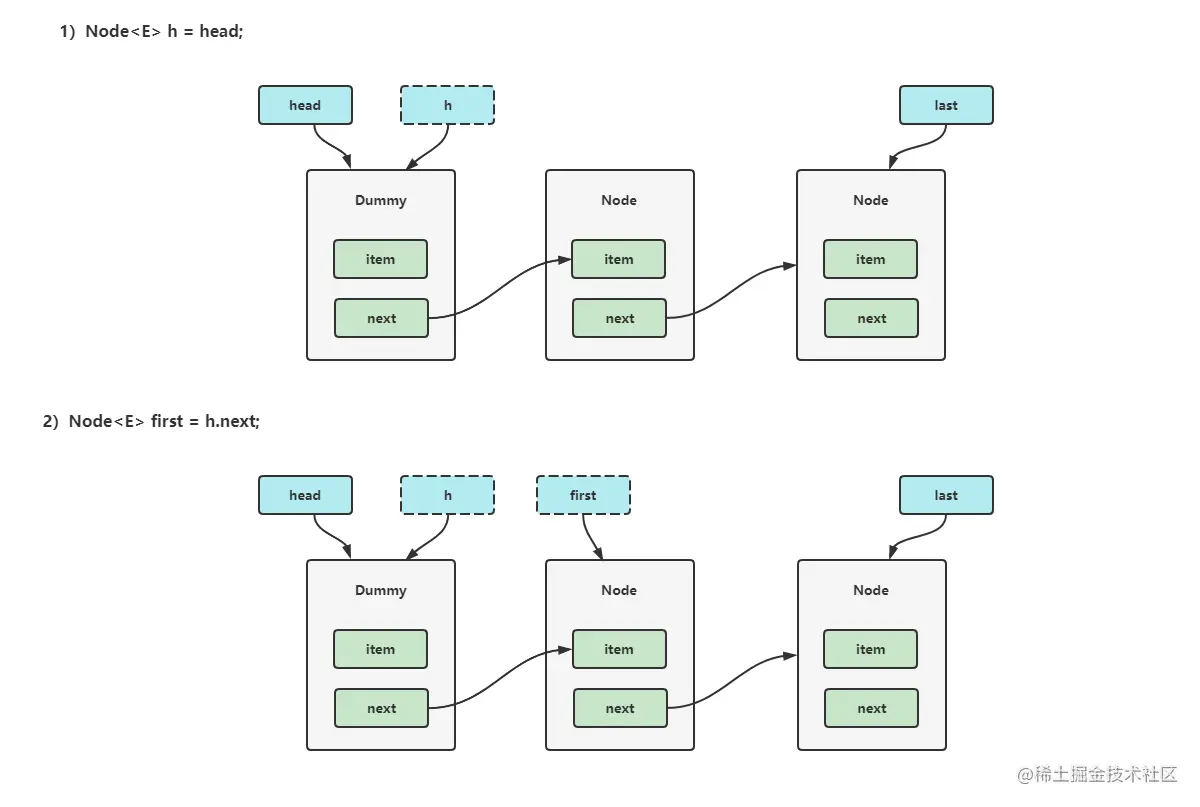 AtomicReference<Node<E>> next = last.next;