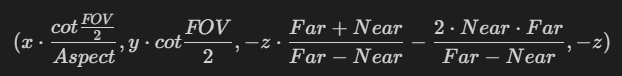 观察空间中的顶点(x,y,z)透视投影到齐次裁剪空间后变为