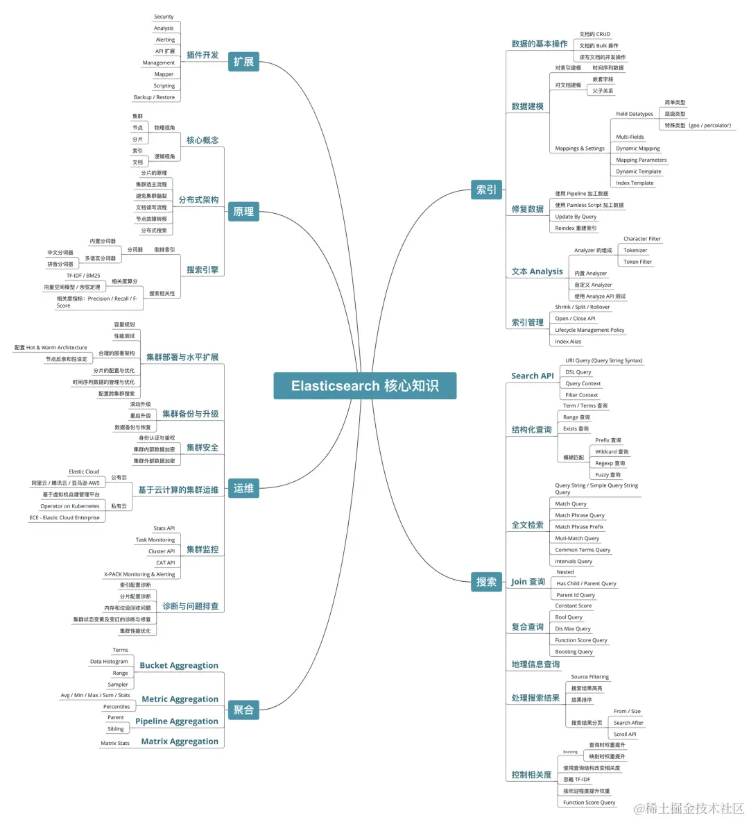 其实,想要掌握 Elasticsearch,不仅要理解其分布式架构的原理外,还要掌握一些信息检索领域的知识及相关技巧。这里,分享给你一张Elasticsearch 核心知识图谱,只有深入理解每个知识点,才能解决工作中的实际问题。