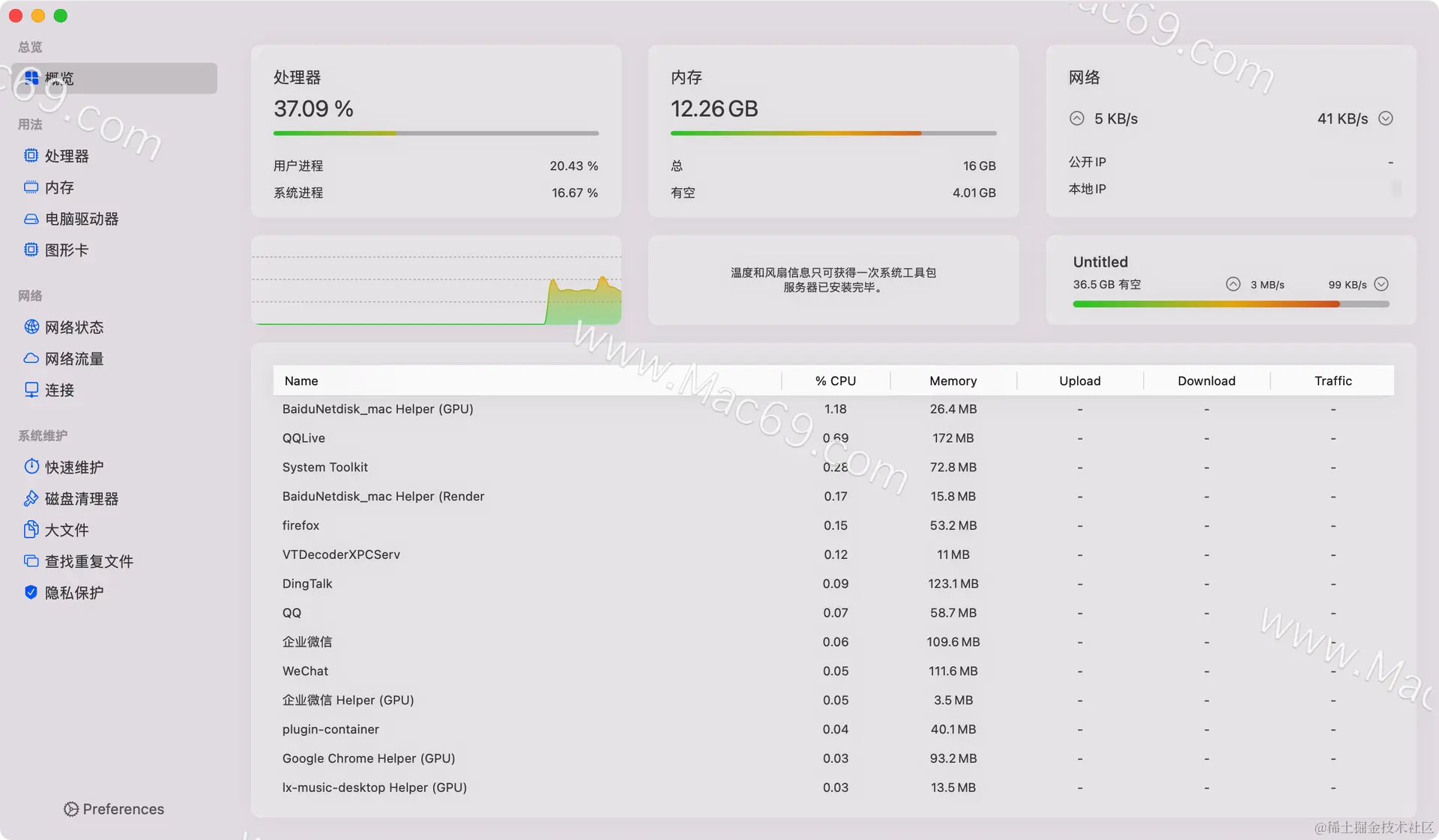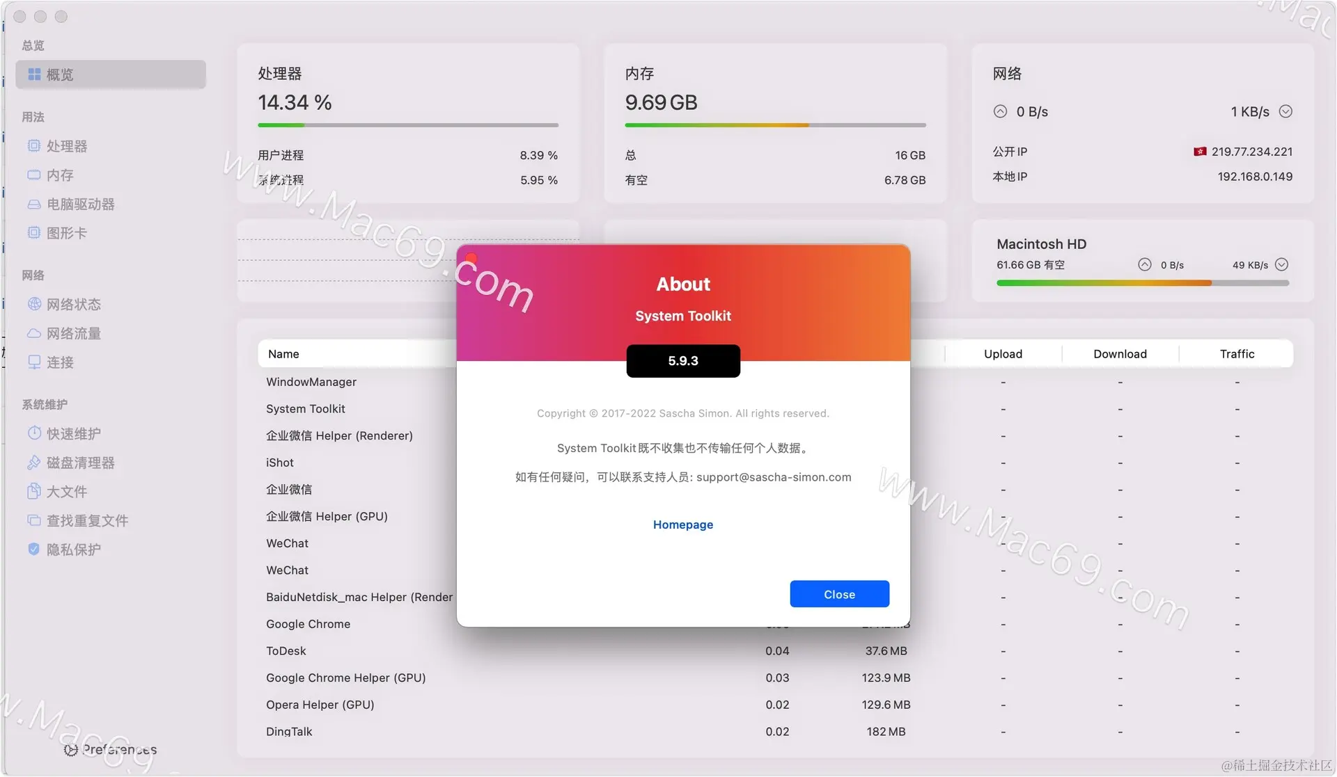 System Toolkit for Mac 特别版是一款专业的Mac系统维护工具,您可以通过它对您的Mac系统进行保护或是磁盘清理,网络状态监控,电池维护等多种服务,来对您的Mac系统进行维护!