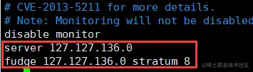 server 127.127.136.0 #设置本地时钟源,注意修改网段(136是网段)