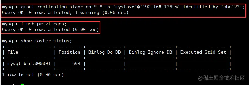 - 配置主服务器,修改其配置文件,在主数据库中创建一个同步账号授权给从数据库使用。