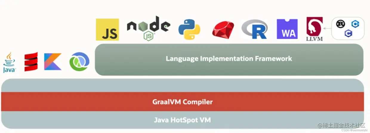 从上面的图也可以看出来GraalVM并不是一个全新的异于HotSpot的虚拟机,而是在HotSpot的基础上,提供了功能非常强大的JIT编译器Graal Compiler。