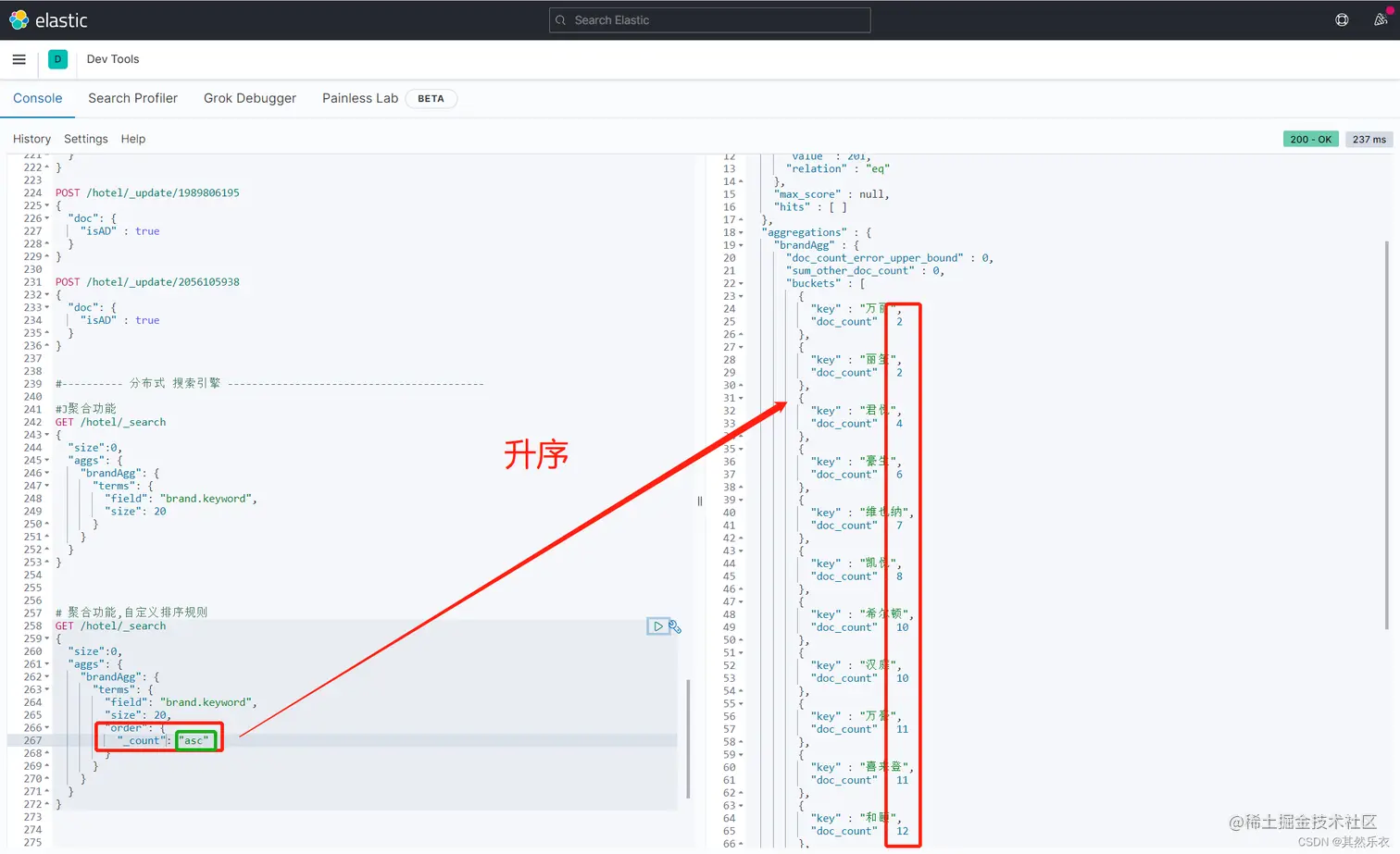 默认情况下,Bucket聚合会统计Bucket内的文档数量,记为 _count,并且按照_count降序排序。
