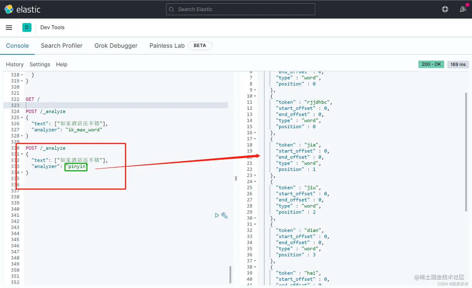 用初始化的拼音分词器进行分词:
