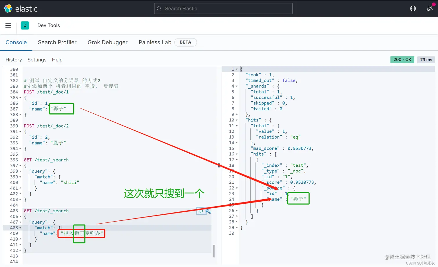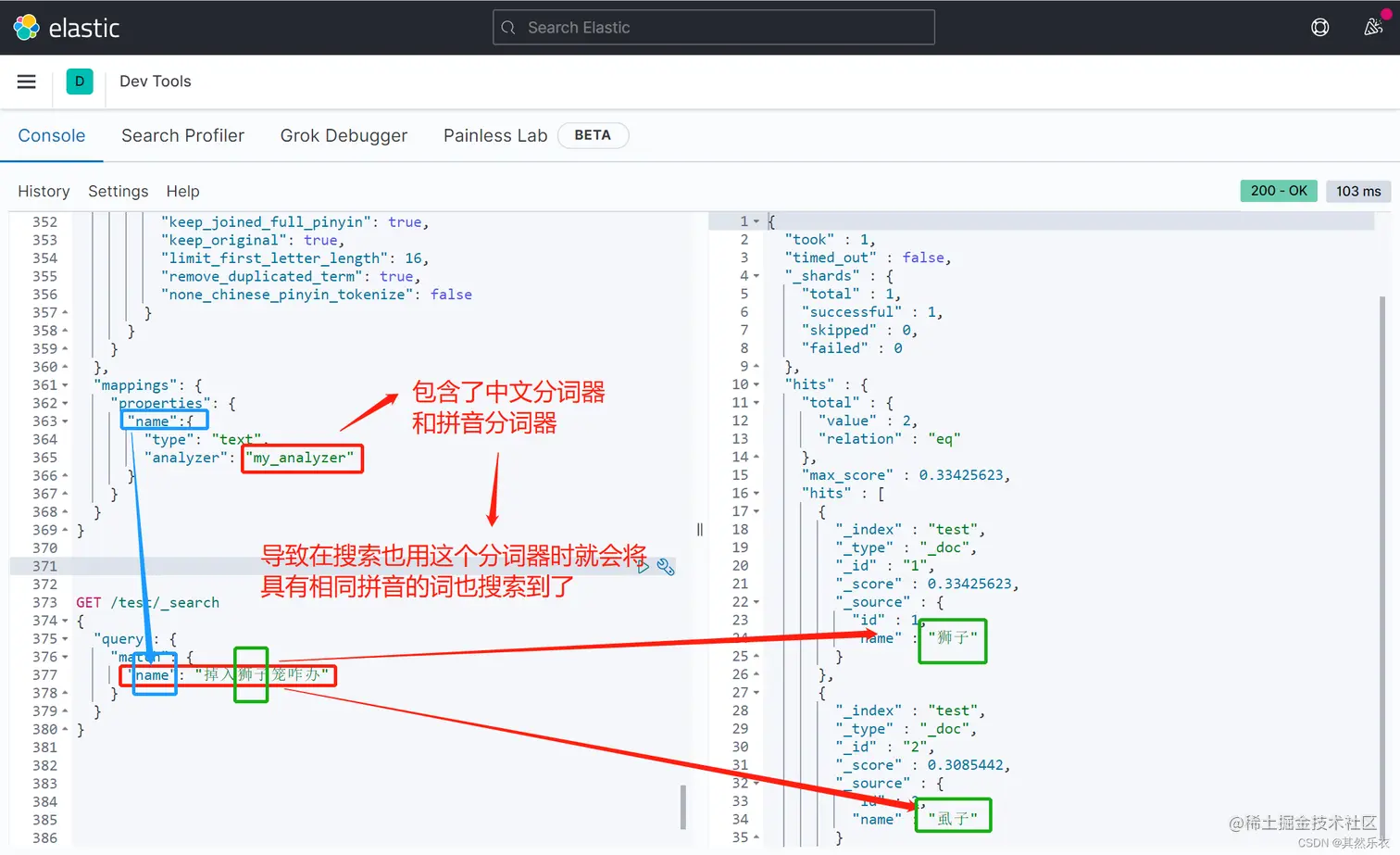 问题:当我用自定义的拼音分词器去搜索一段又狮子的中文时,却也搜出了库里面的的虱子,因为“狮子”和“虱子”有着相同的拼音,而拼音分词器就是可以将相同拼音的中文都搜出来