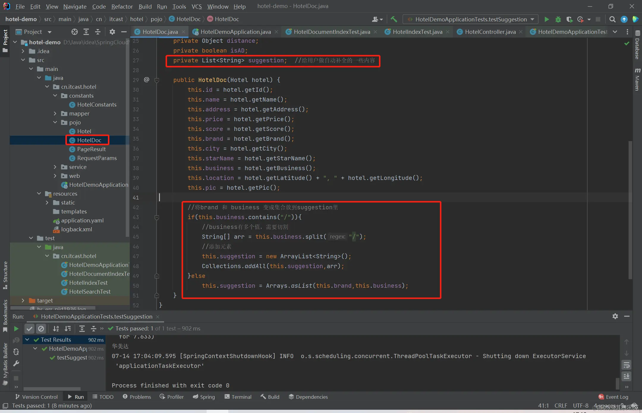 设置索引库结构,给用户添加可自动补全的suggestion,并将一些字段变成集合放到suggestion里面去