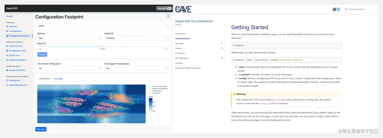 DeepCAVE 是一个用于 AutoML(尤其是子问题超参数优化)运行的可视化和分析工具。该框架是在 Dash的基础上编程的,具备极好的交互性。丰富的插件给大家的数据洞察提供强大的支撑,强大的运行界面和模块化的插件结构使得大家可以轻松地扩展该工具。