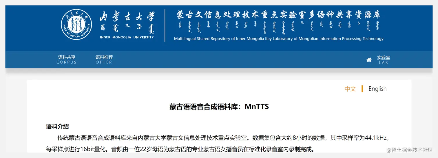 🔥 『MnTTS』蒙古语·文本到语音合成数据集和配套基准