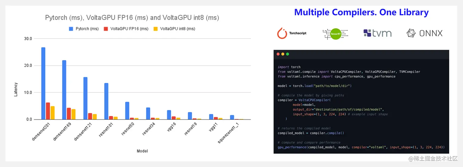 voltaML 是一个开源的轻量级库,用于加速你的机器学习和深度学习模型。只需要一行代码,VoltaML就可以优化、编译和部署你的模型到目标 CPU 和 GPU 设备。
