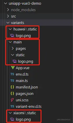 说明:假设工程需要上线 2 个不同的渠道,分别是华为和小米,它们各自显示的 logo 图片不同,那么可以在各自的渠道目录下放置各自的 logo 图片,如果有一个渠道没有放置 logo 图片,则使用 main 目录下默认的 logo 图片,其他源码文件同理。