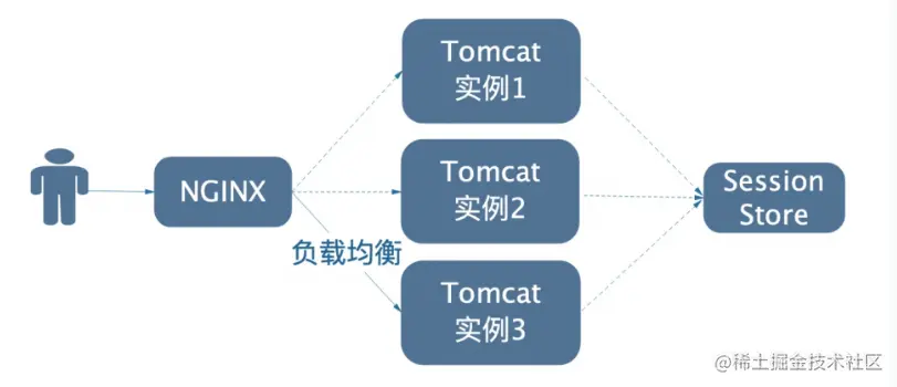 使⽤粘性会话,即:对相同IP的请求,NGINX总会转发到相同的Tomcat实例,这样就就⽆需图中的Session Store了。不过这种⽅式有很多缺点:⽐如⽤户断⽹重连,刷新⻚⾯,由于IP变了,NGINX会转发到其他Tomcat实例,⽽其他实例没有Session,于是就认为⽤户未登录。这让⽤户莫名其妙,⽤得越来越少了。