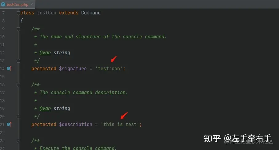 protected $signature = 'test:con';
