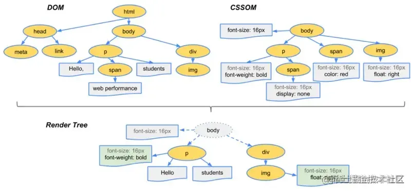 3. 合并DOM树和CSS规则,生成render树