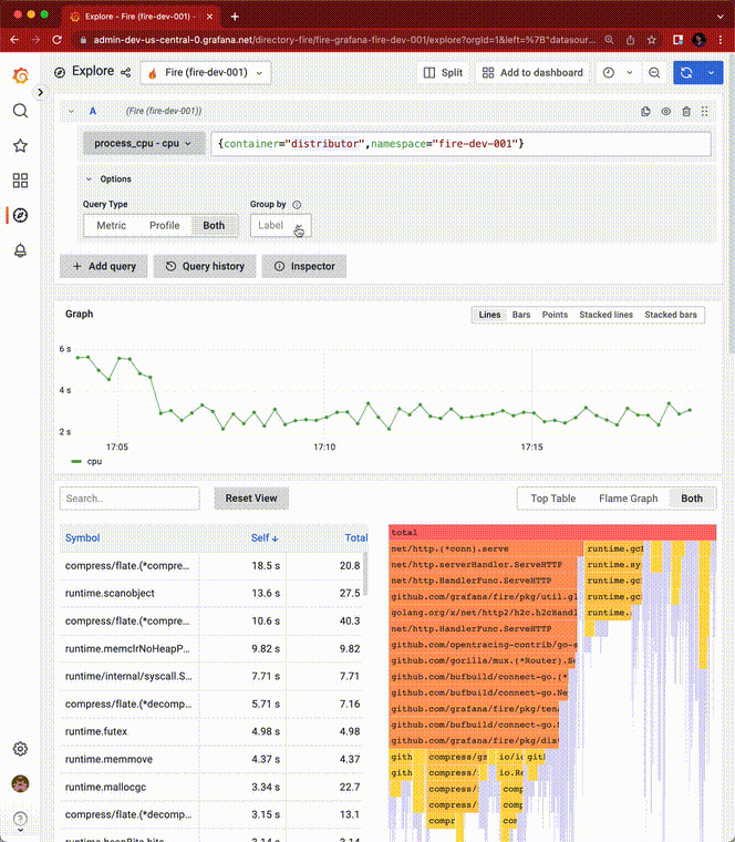 New Grafana 开源的可用于聚合 continuous profiling(持续分析)数据,持续分析可让你了解工作负载的资源使用情况,比如:CPU、内存,从而优化性能和节省成本。由于是 Grafana 开源的聚合数据工具,phlare 可以和 Graph 完成集成协助观察资源数据。