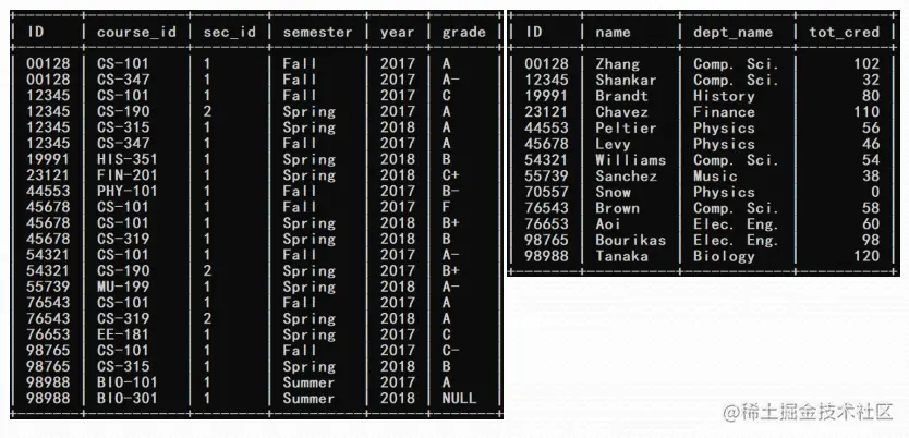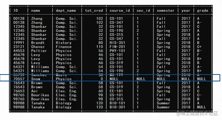 - 如果where子句对一个元组计算出false或unknown,那么该元组不能被加入到结果集中.