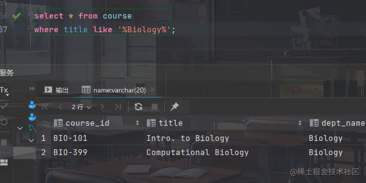 - 找出课程名字中包含子串"Biology"的课程的详细信息