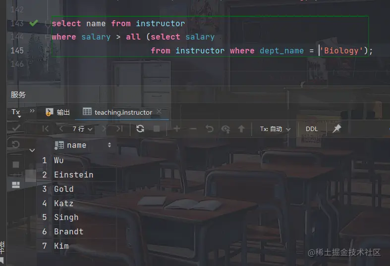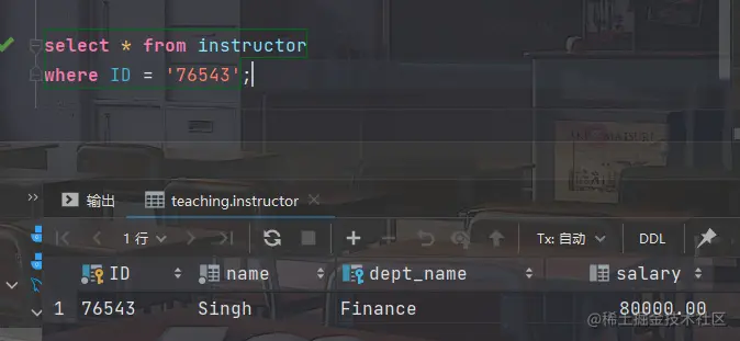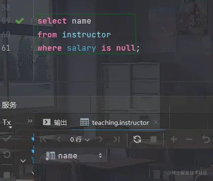 - 例如:找出instructor关系中salary为空值的所有教师