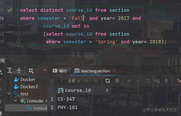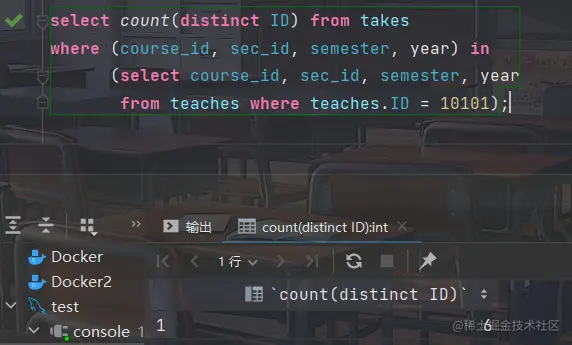 - 计算teaches关系中元组的个数