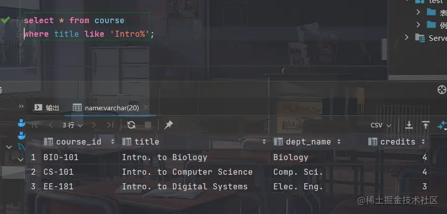 - 找出课程名以"Intro"为开头的课程的详细信息