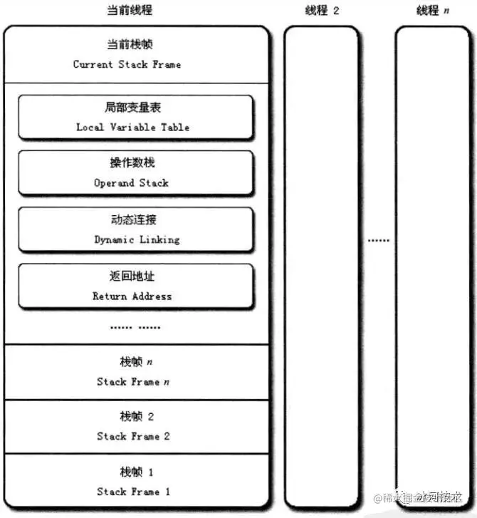 Java 虚拟机栈(Java Virtual Machine Stacks)是线程私有的,生命周期与线程相同。