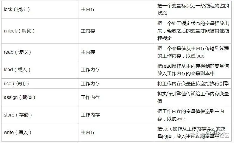 一个变量如何从主内存拷贝到工作内存、如何从工作内存同步回主内存,Java内存模型定义了8种操作: