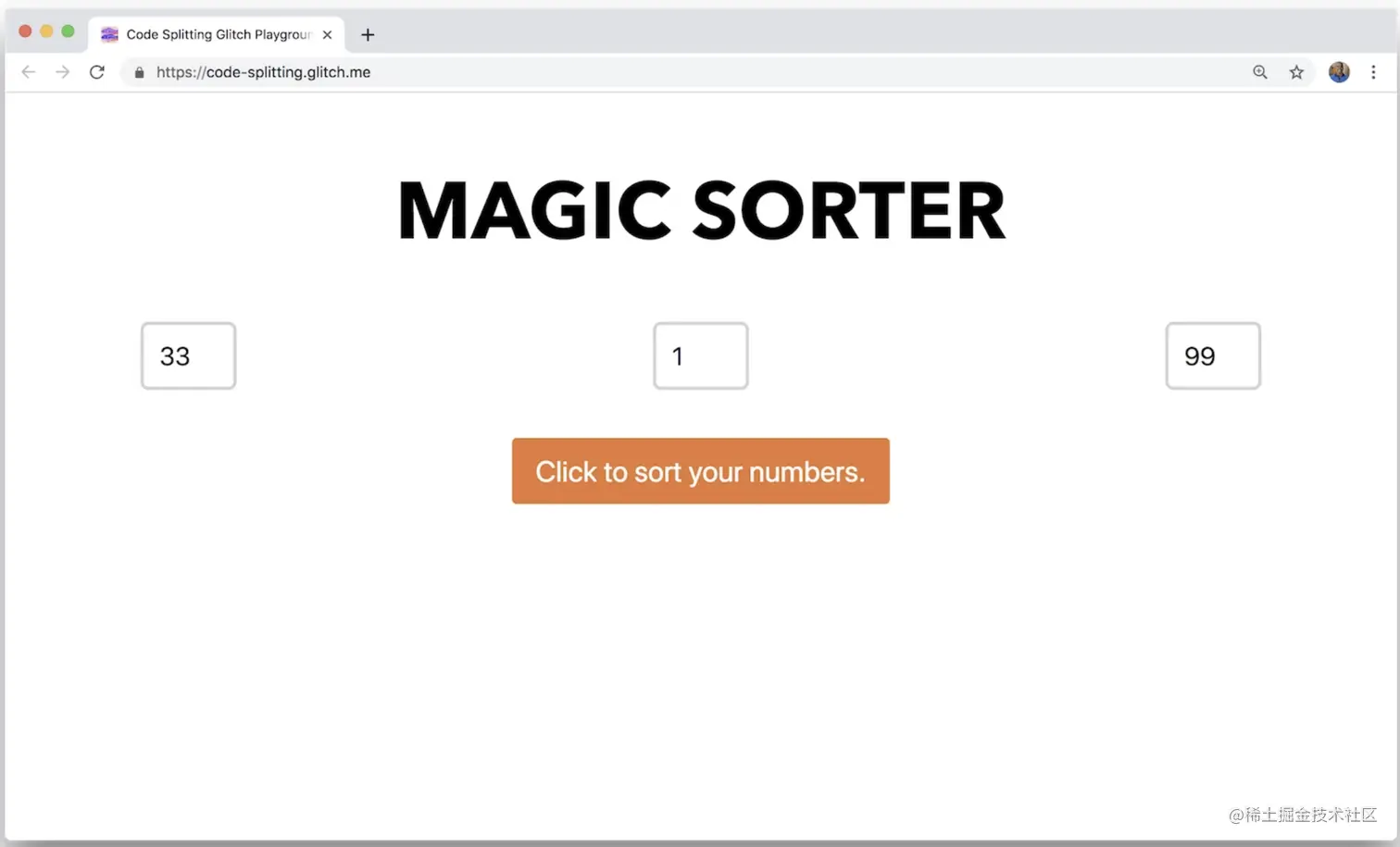 这个代码实验室展示了如何使用代码拆分来提高对三个数字进行排序的简单应用程序的性能。