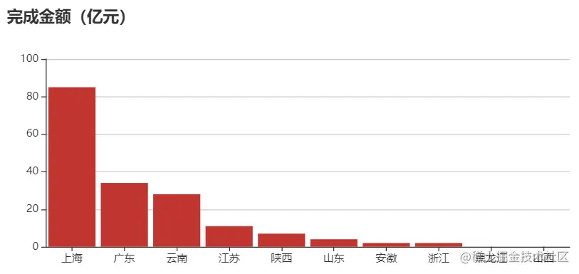 本周项目量完成金额地区TOP10:上海、广东、云南、江苏、陕西、山东、安徽、浙江、黑龙江、山西