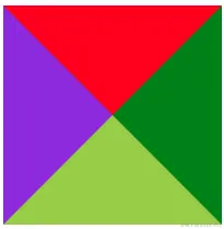 比如想得到左面紫色三角形,只需要把上右下的三个三角形的 border-border 设成 transparent即可,但这样有一个问题,就是右边还会占有 100px 空间。可以设 border-right-width:0 去掉。