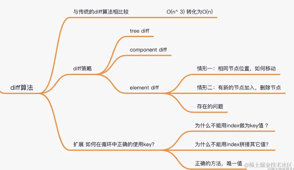 - element diff:对于同一层级的一组子节点,需要通过唯一 id 进行来区分