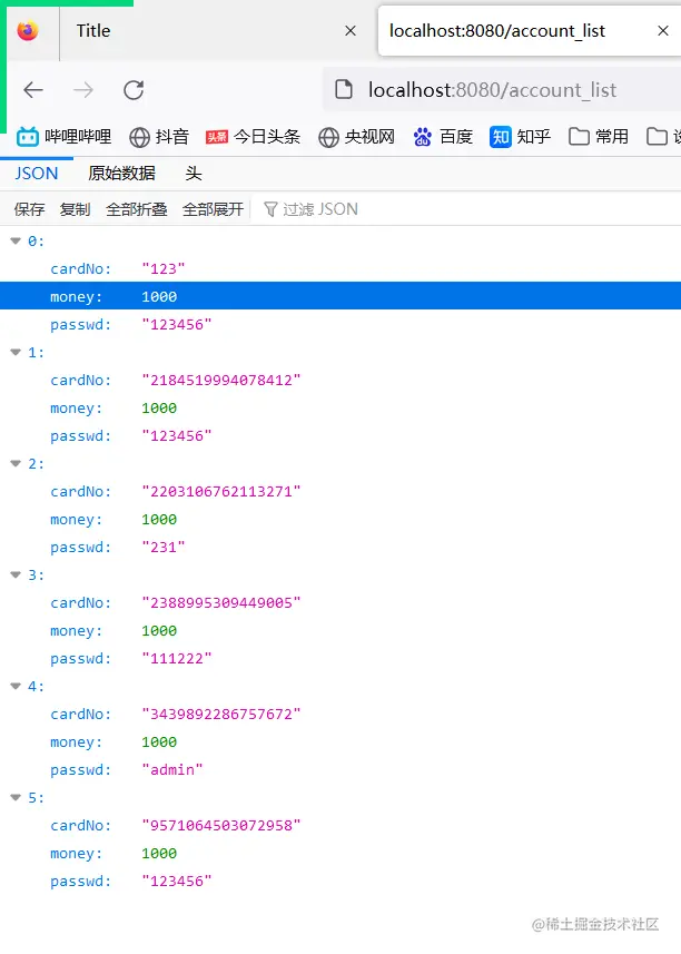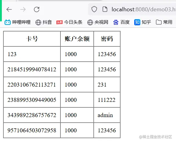 数据库中的数据: