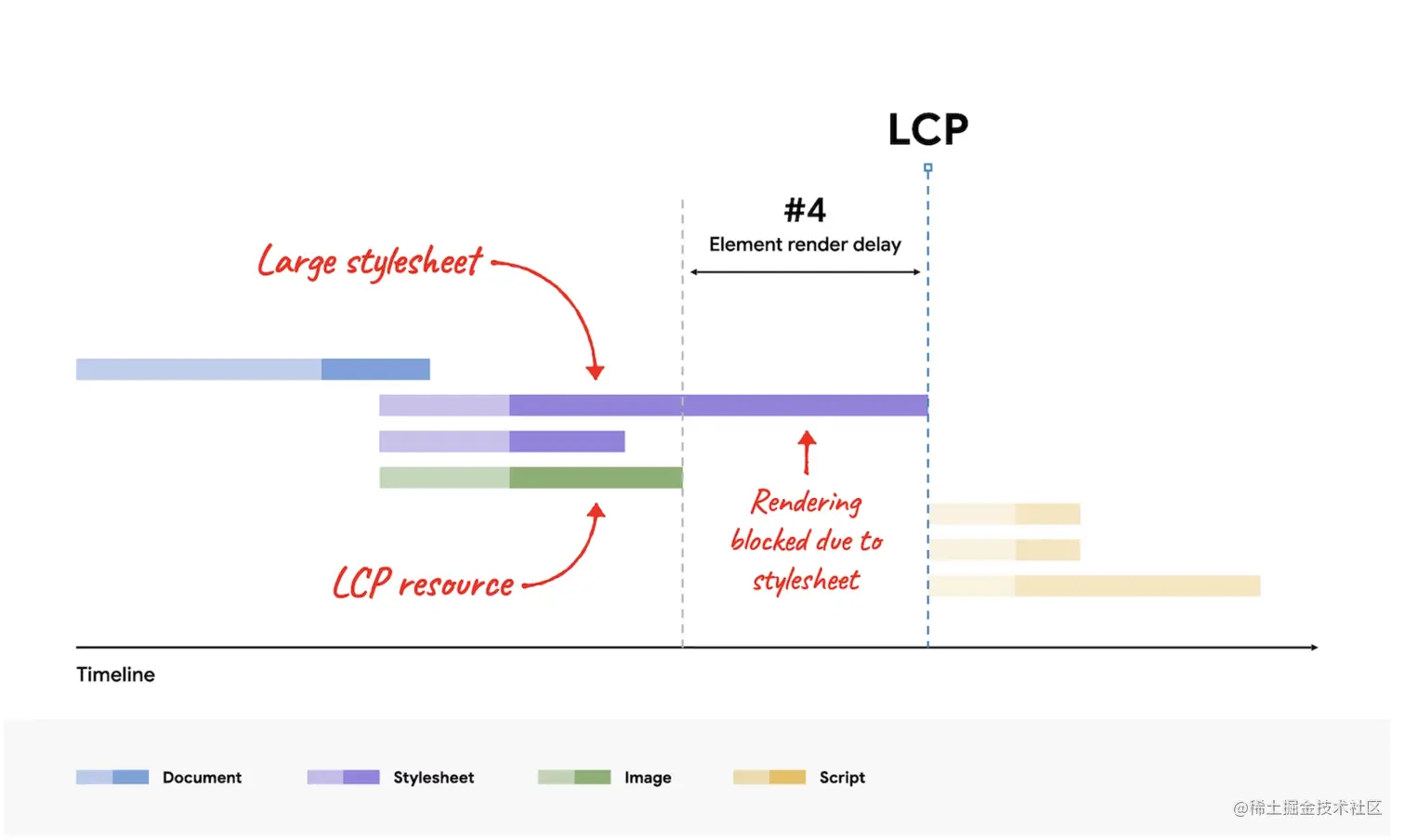 LCP元素不能在其资源完成加载后立即呈现的主要原因是由于其他原因导致呈现阻塞: